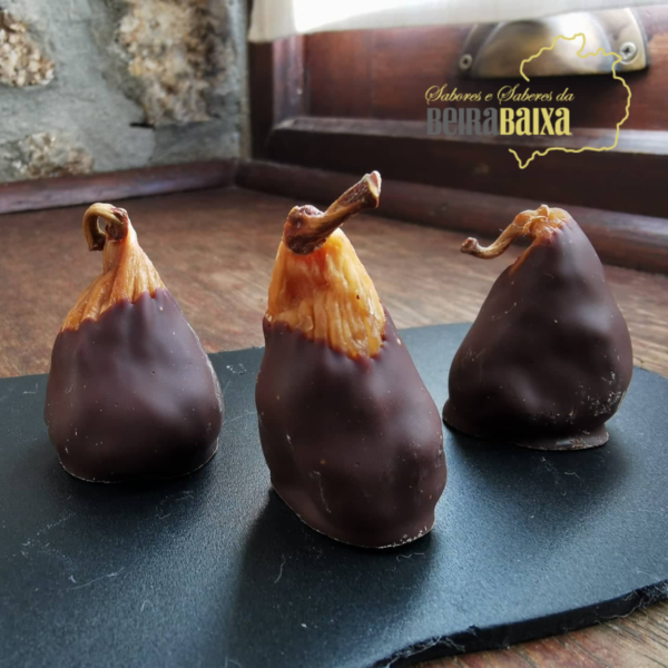 Em pleno coração da Serra da Gardunha, os chocolates artesanais, são produzidos com o saber e a arte do Mestre chocolateiro Luís Martins, que graças a uma delicada e rigorosa combinação dos melhores ingredientes produz surpresas deliciosas como estes bombons de figo seco com chocolate. \n \nIngredientes Figo seco, pasta de cacau, açúcar, MANTEIGA de cacau, emulsionante \n(lecitina de girassol), aroma natural de baunilha. NATAS, cereja. Cacau: mínimo \n60%.