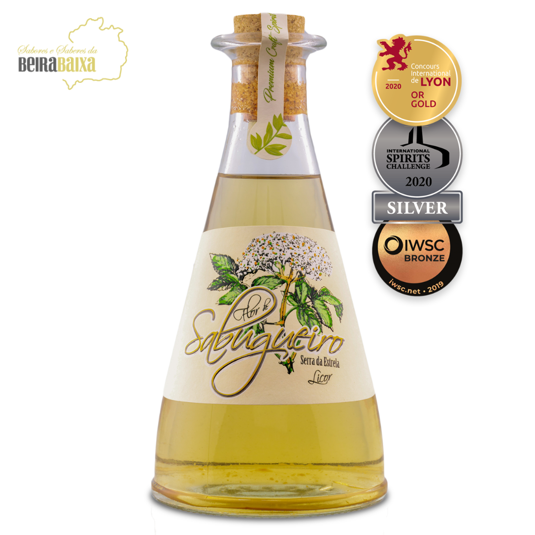 Os aromas florais e herbáceos intensos deste licor de Flôr de Sabugueiro tornam-no sedutor e apetecível. Proveniente da infusão da flor destas árvores que crescem acima dos 800 metros de altitude, o licor afirma-se como ideal para a composição de corta-sabores, cocktails ou mesmo para se tomar puro com gelo. I